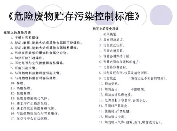 标签填写注意事项:危险情况和安全措施必须分别遵照《危险废物贮存污染控制标准》危险用语和安全用语填写。
