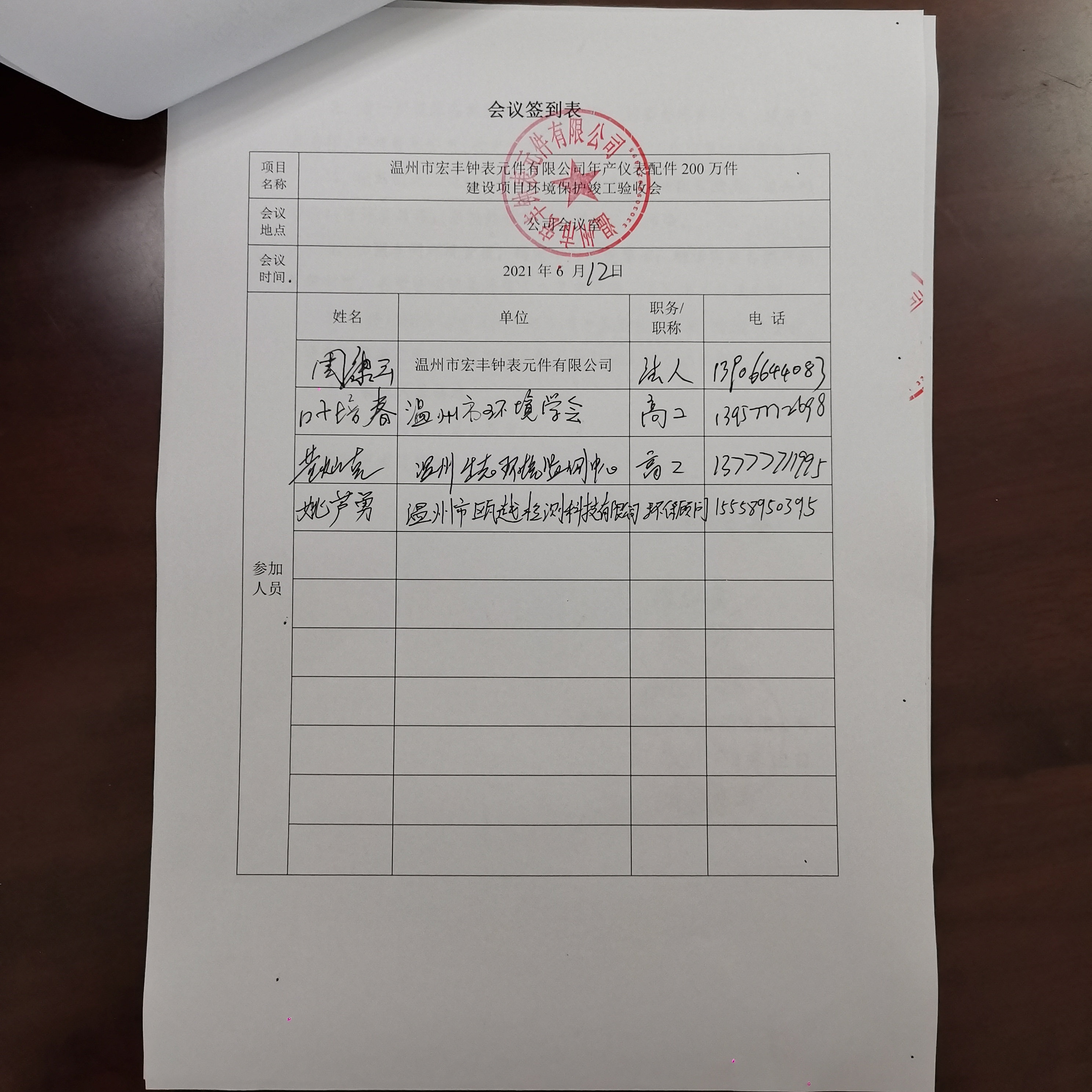 验收检测公示:温州市宏丰钟表元件有限公司年产仪表配件200万件项目环境保护设施竣工验收检测报告