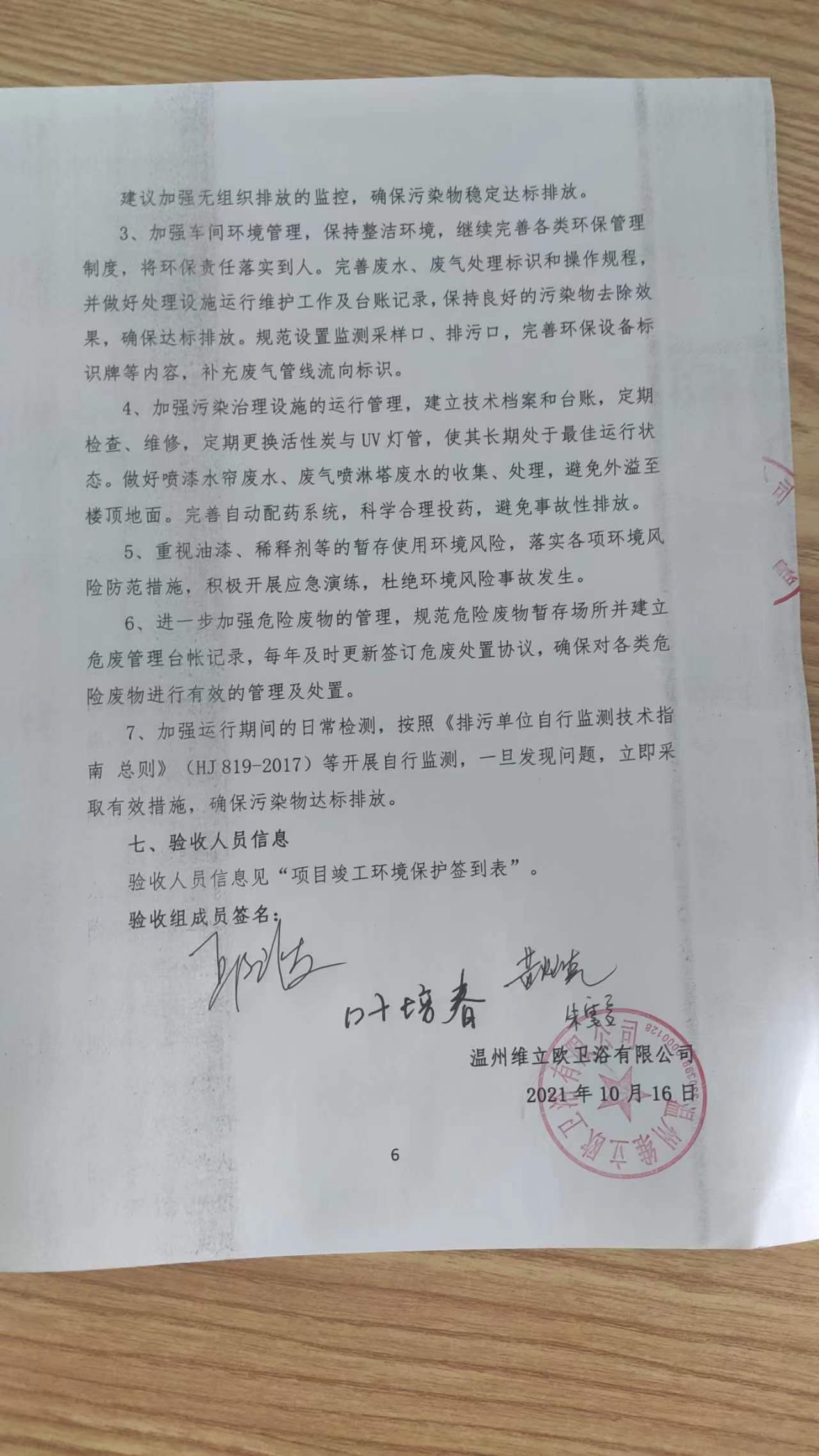 验收检测公示:温州维立欧卫浴有限公司年产7500套浴室柜建设项目阶段性竣工
